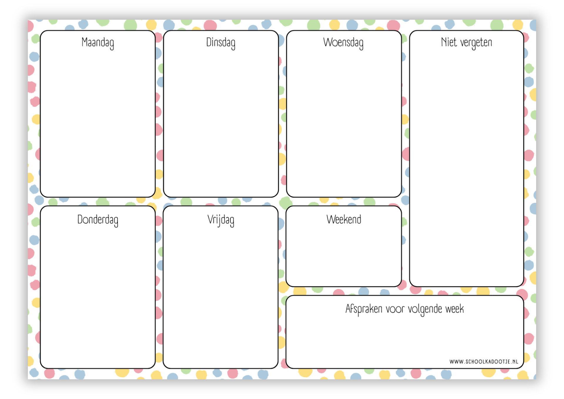 Met deze handige weekplanner vergeet je niets meer, plan direct al je wekelijkse taken en noteer in de rechterkolom alles wat je moet onthouden. Onmisbaar op je bureau!