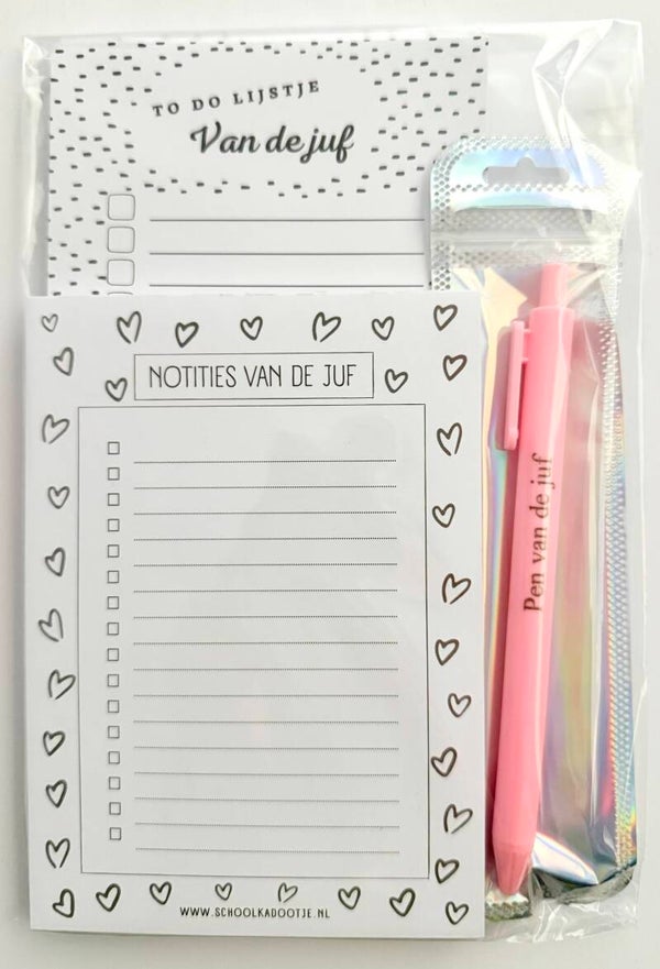 --> To do lijstje van de juf | Notities van de juf | Pen van de juf wit of roze
