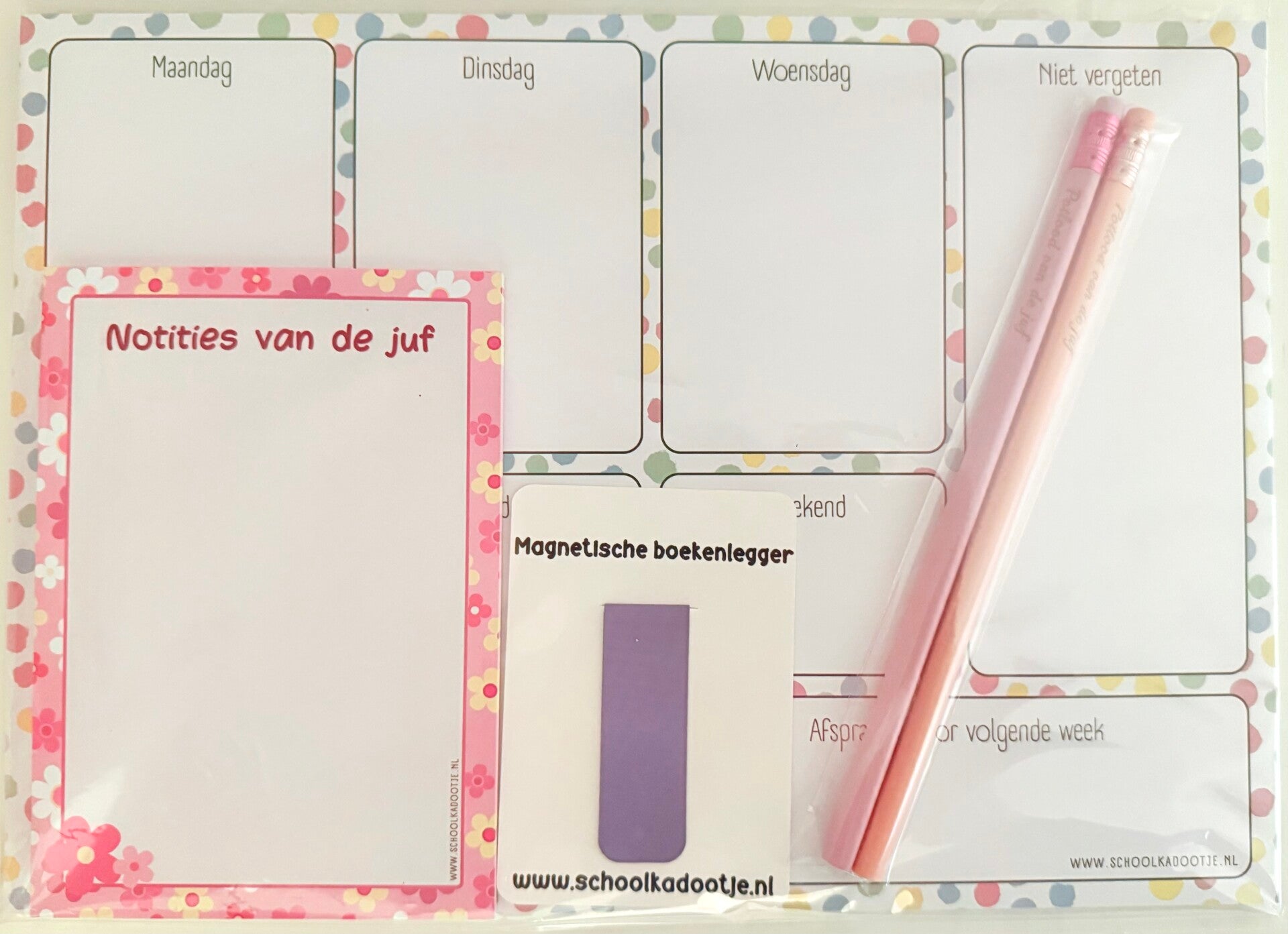 Weekplanner | Notities van de juf | magnetische boekenlegger | Twee potloden van de juf